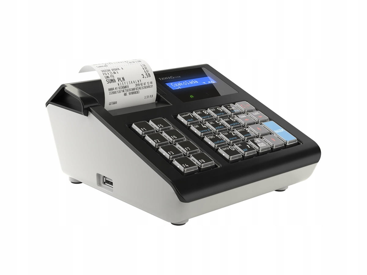 kasa fiskalna FAWAG LITE ONLINE Jest mała, solidna i prosta w obsłudze, a także ergonomiczna i funkcjonalna. Można do niej podpiąć szufladę kasjerską, skaner kodów kreskowych, wagę, terminal płatniczy i komputer.